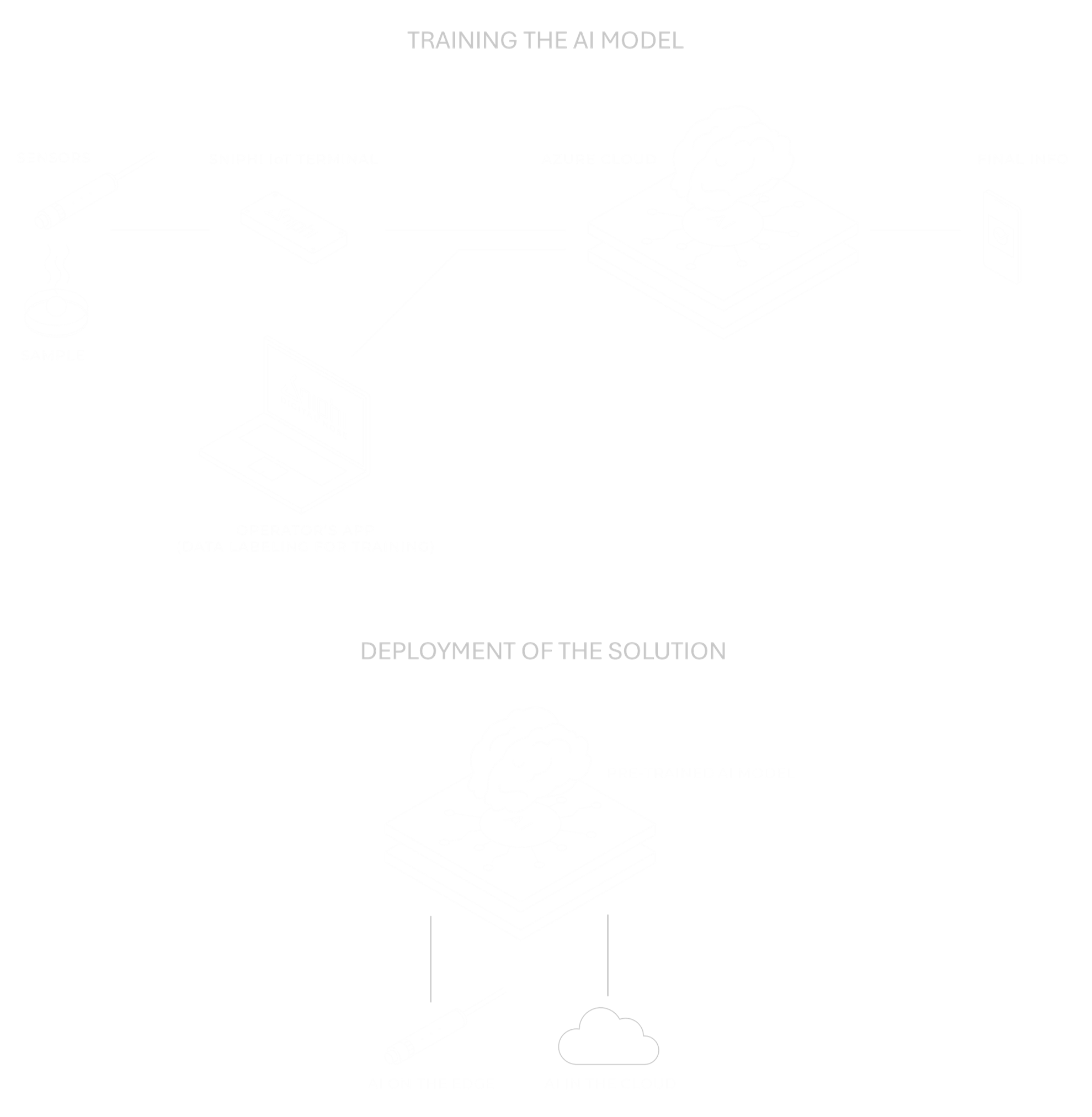 The pre-trained model can be deployed either directly on the sensor (AI on the Edge) or hosted in the cloud and accessed via API requests (AI in the Cloud).